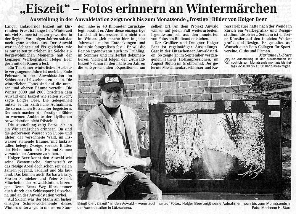 Presseartikel zur Ausstellung "Eiszeit im Auwald" - LVZ 11. 02. 2005